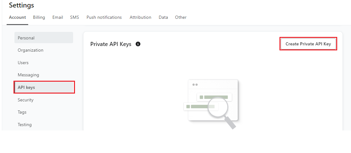 b. Click on the “API keys” tab and then press the “Create Private API Key” button.