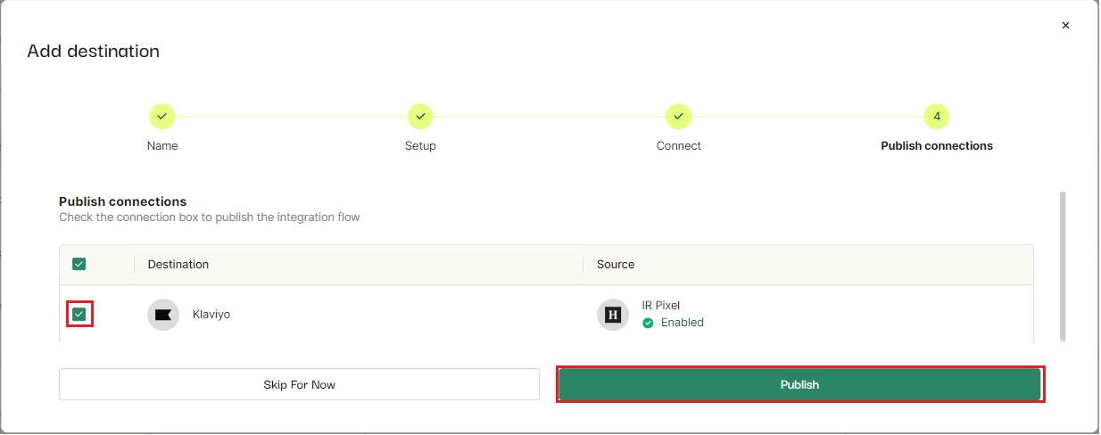 Note: You can only publish the integration once at least one flow triggered by Herb Reconnect metrics is live. If no flows are live yet, you can skip this step for now and return later to publish the integration.